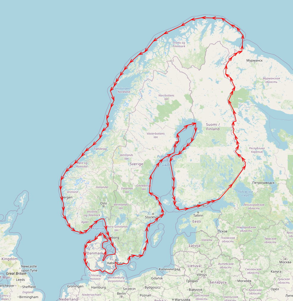 Dänemark, Schweden und Finnland (jeweils komplette Region)