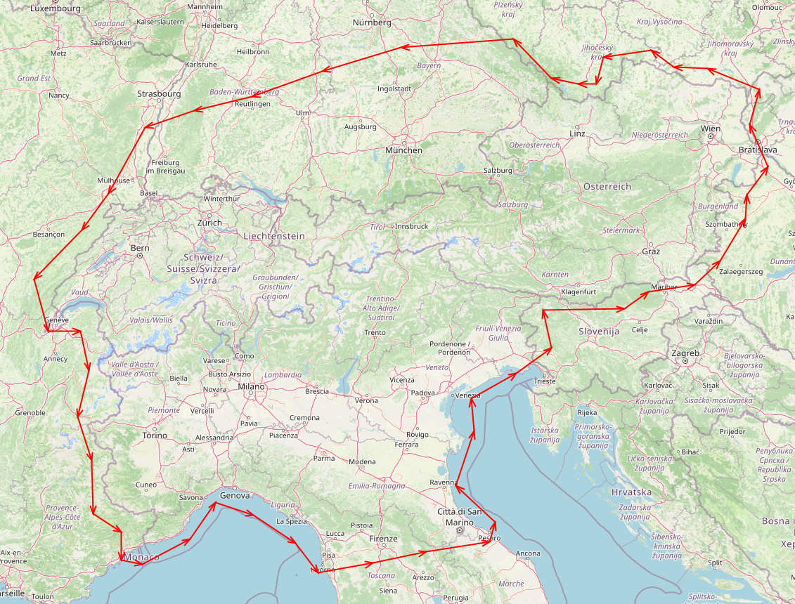 Österreich, Slovenien, Ungarn und Tschechien