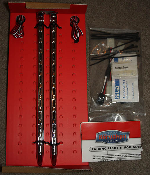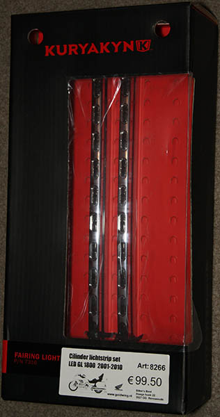 Schöne Seitenbeleuchtung für die Goldwing, welche einfach nur aufgeklebt wird. Der elektrische Anschluß ist etwas Zeit aufwändiger, da auch eine Blinkerfunktion mit integriert worden ist. Die Arbeitsschritte sind aber ausführlich erklärt.